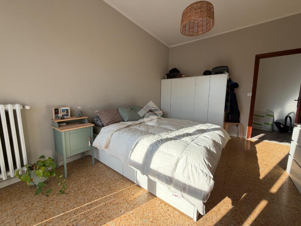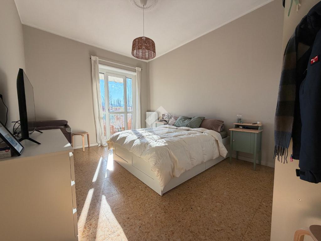 La camera da letto, anch'essa di grande metratura, ha la stessa esposizione della zona giorno. Anche qui si trova un balcone da dove si può ammirare la collina torinese e la basilica di Superga. Passare le serate limpide a scrutare la collina con le sue luci è un buon modo per rilassarsi prima di andare a dormire.