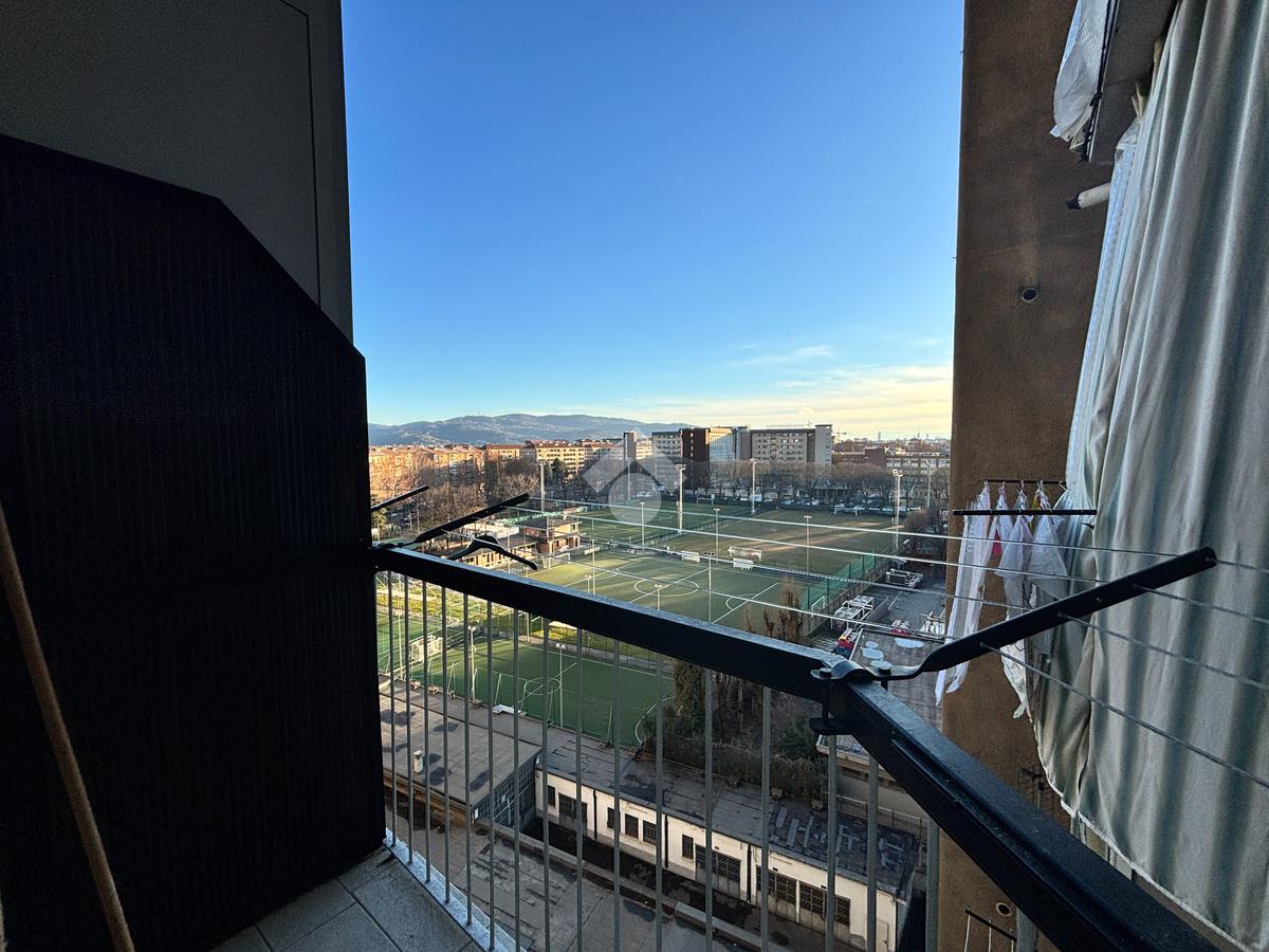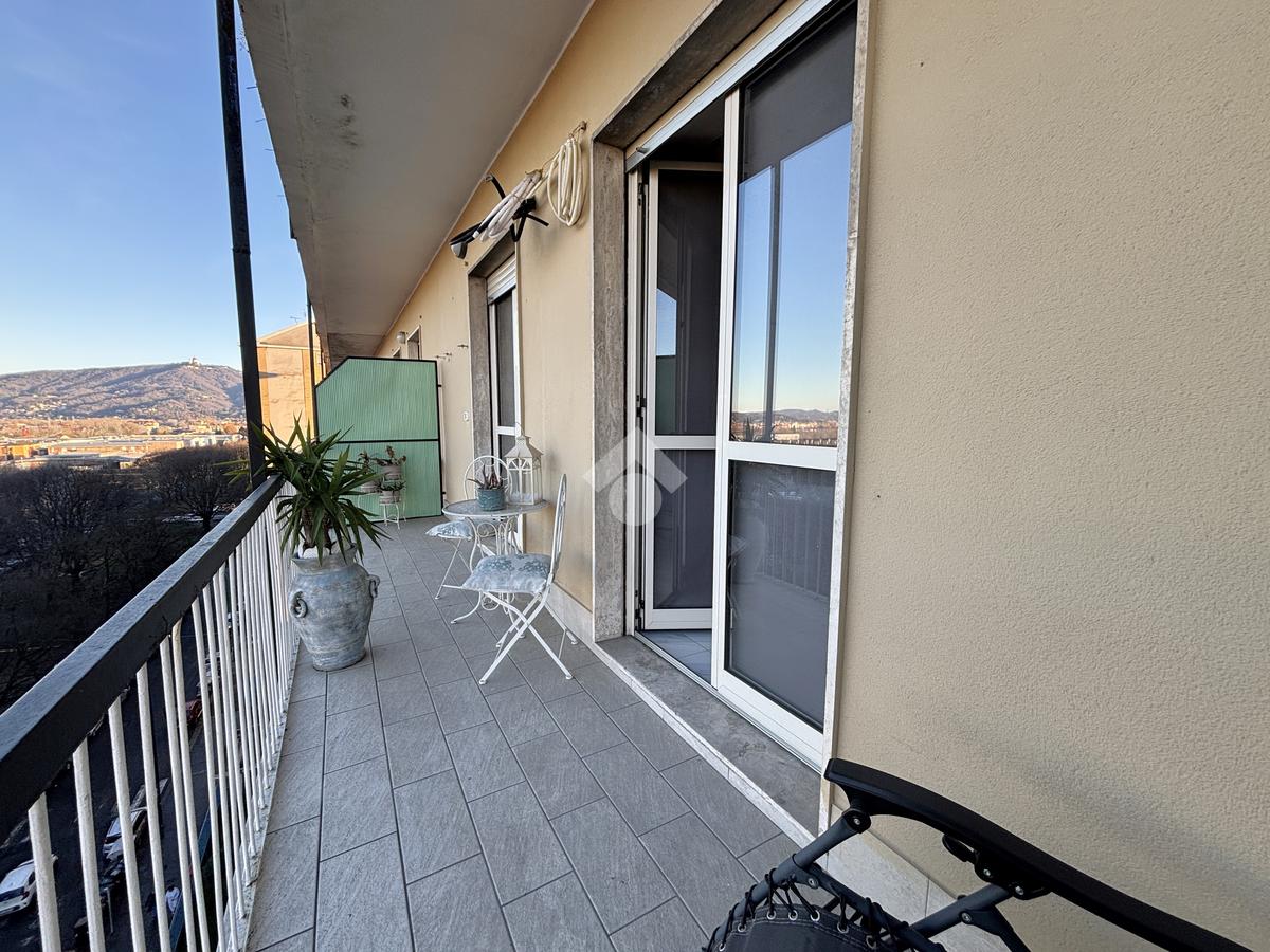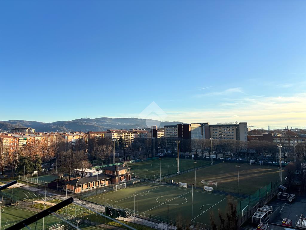 La cucina è abitabile ed è esposta a Sud con affaccio tramite balconcino nell'interno cortile. Da qui i veri protagonisti sono la collina torinese ed il campo da calcio del Mercadante.