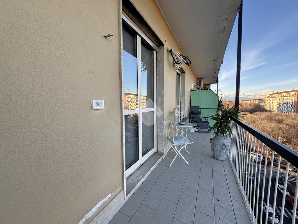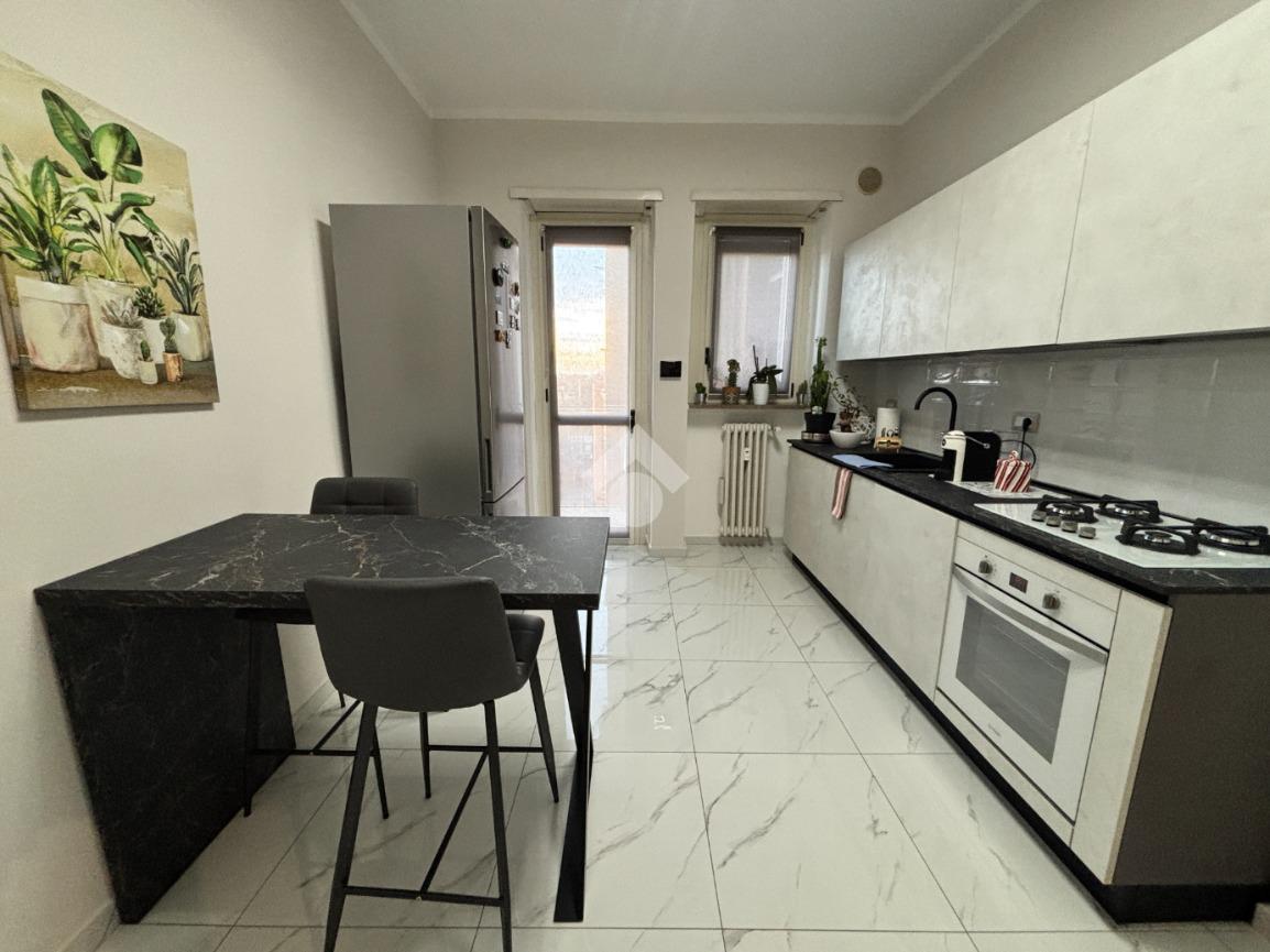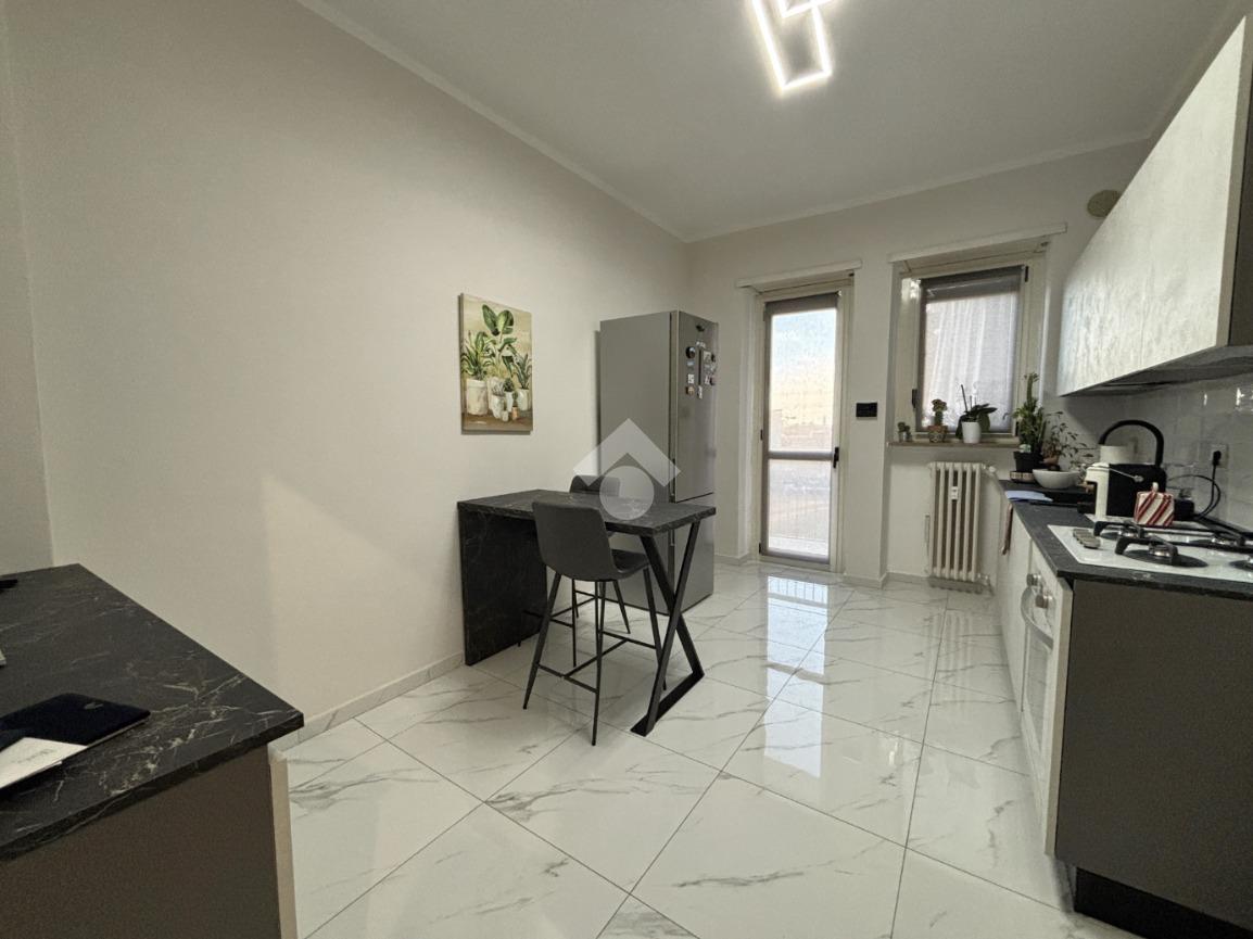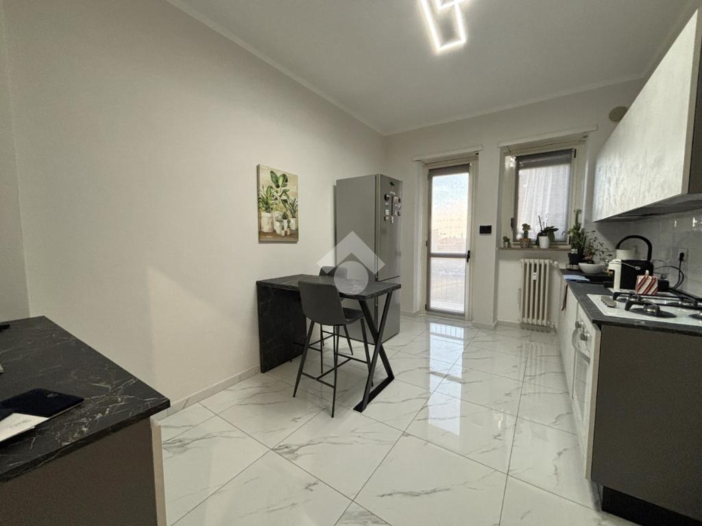 La cucina è abitabile ed è esposta a Sud con affaccio tramite balconcino nell'interno cortile. Da qui i veri protagonisti sono la collina torinese ed il campo da calcio del Mercadante.