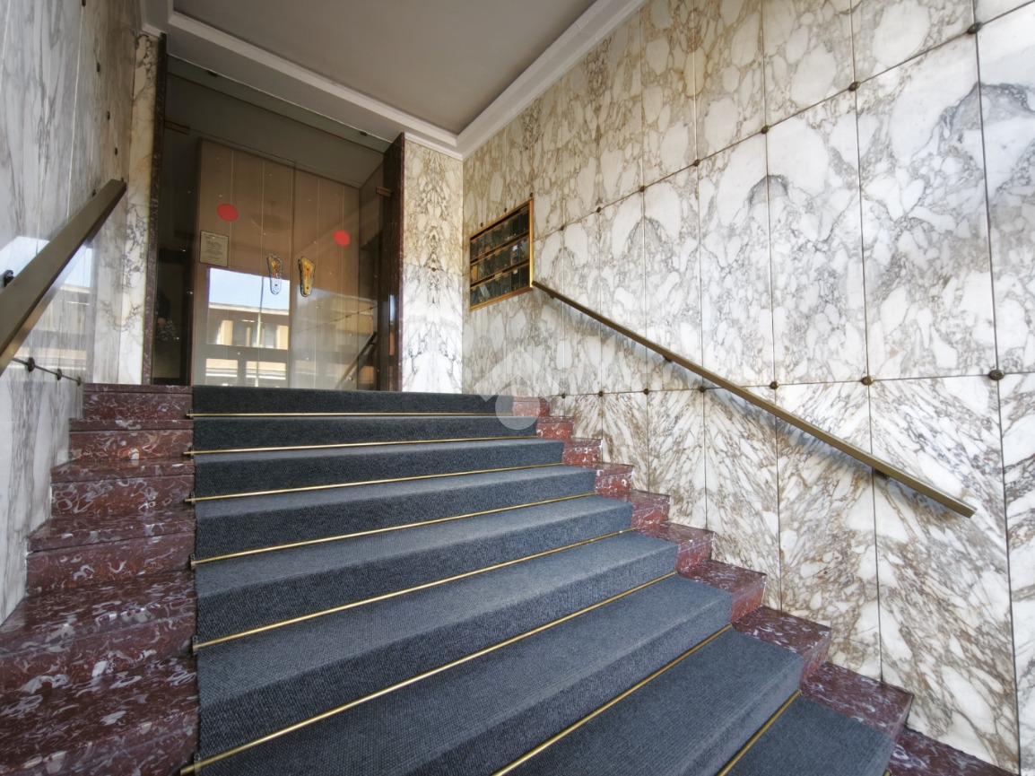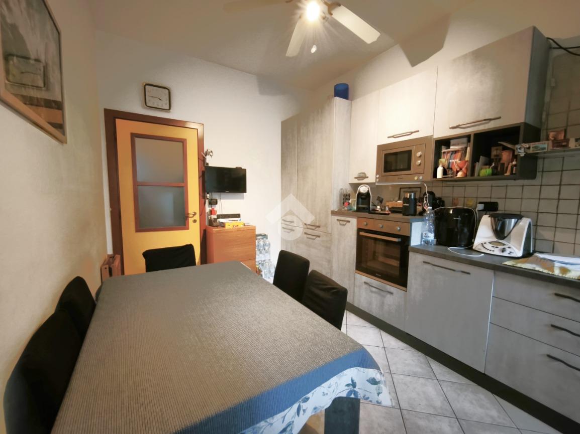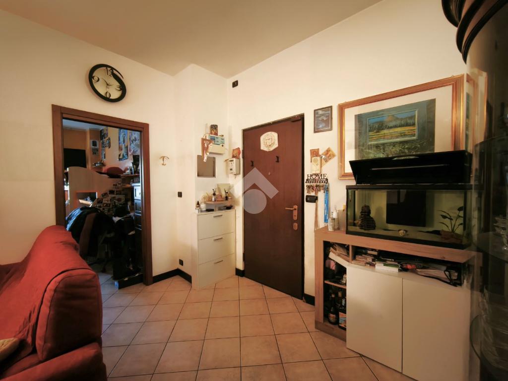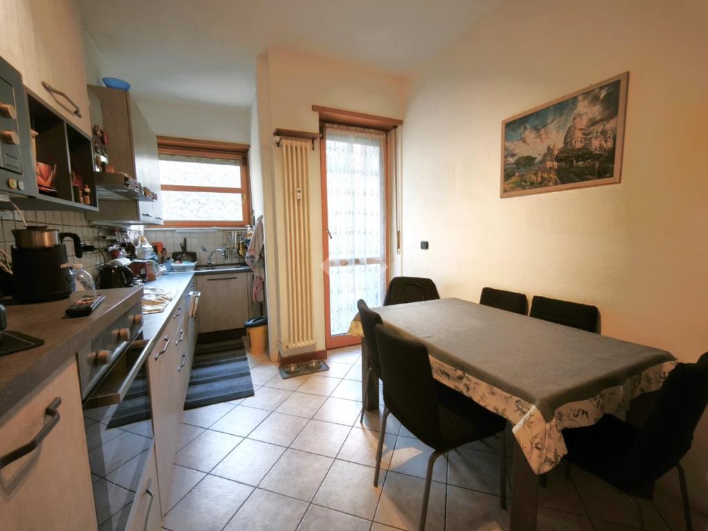 In una delle scale del complesso Miramonti, con ingresso su via Monte Rosa, trilocale in buono stato interno al piano rialzato.