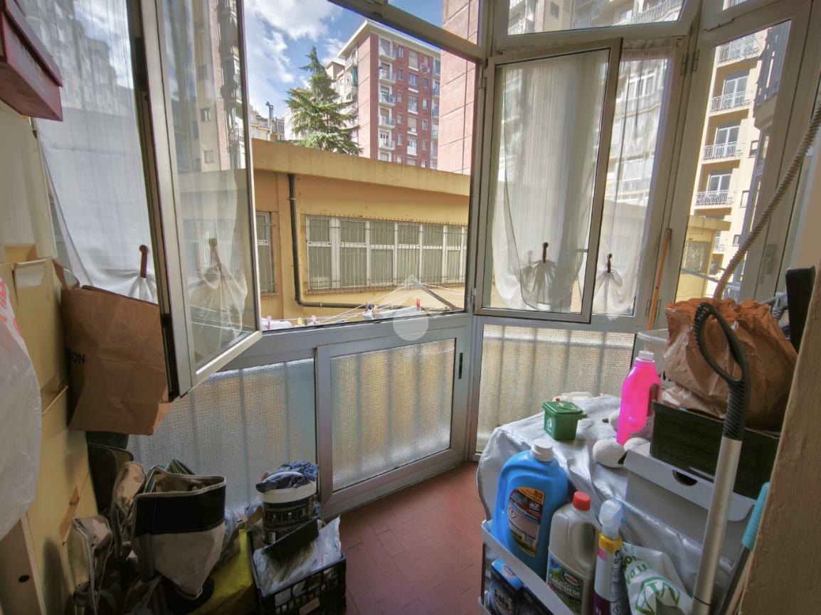 La cucina è abitabile ed è servita da un comodo balcone che affaccia nell'interno cortile verso Ovest. Qui è possibile stendere in quanto l'altezza che c'è tra l'alloggio ed il piano box lo permette.